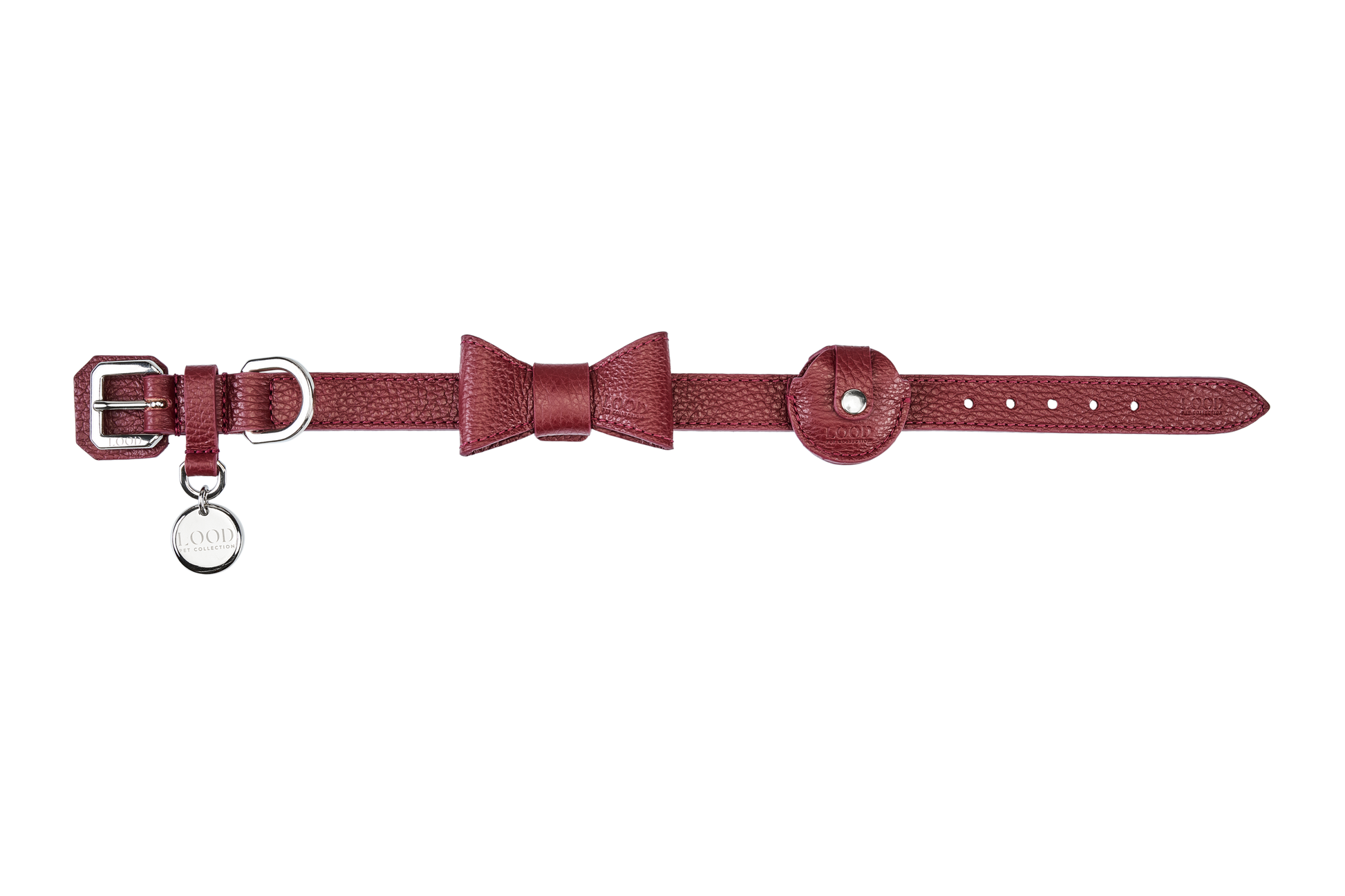 Il fiocco si applica facilmente al collare tramite bottone a pressione, mentre il Porta AirTag si inserisce scorrendolo lungo il collare. Entrambi possono essere utilizzati fino alla taglia 45.