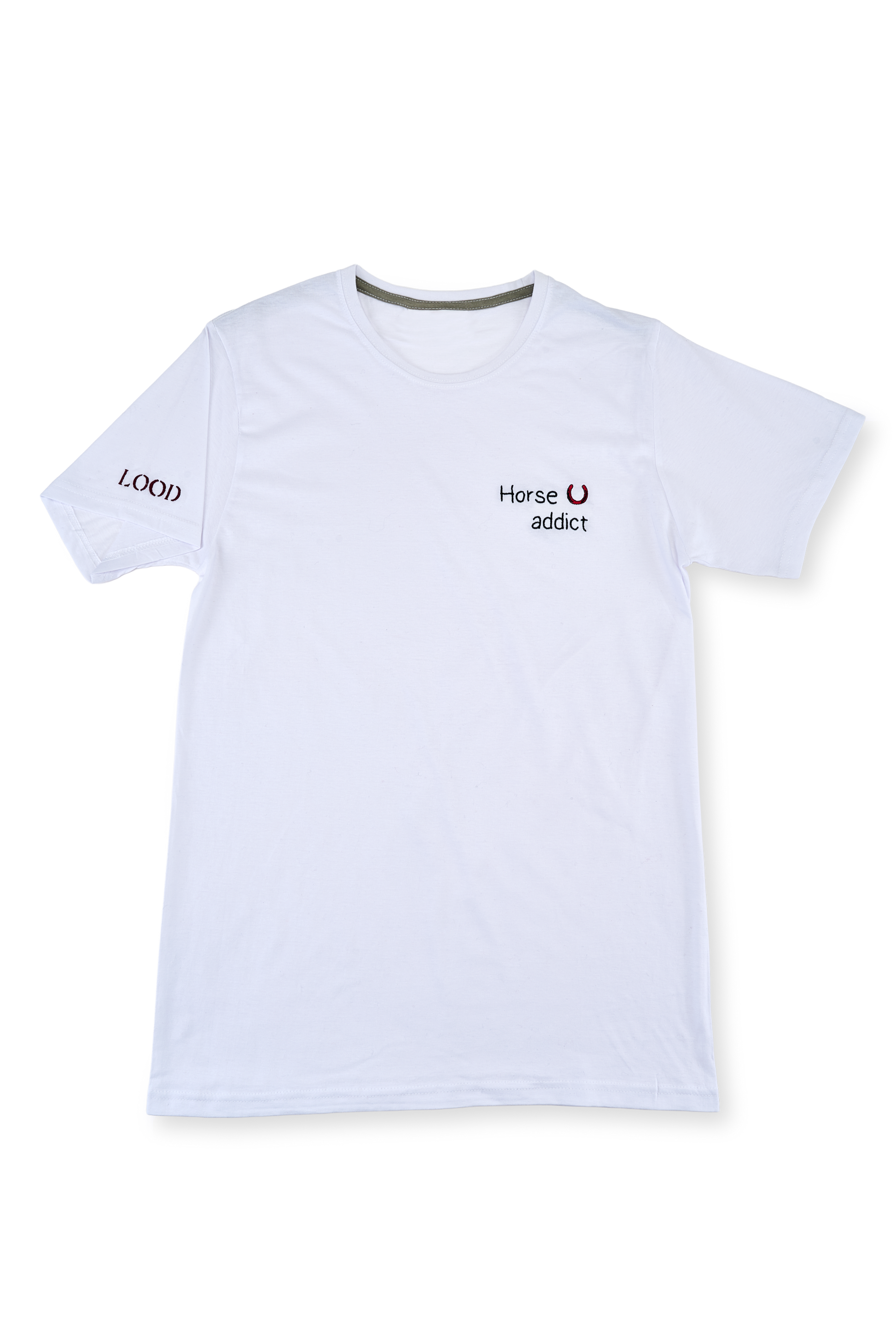 La T-shirt Horse Addict è dedicata a chi vive il mondo equestre ogni giorno, non solo in sella.